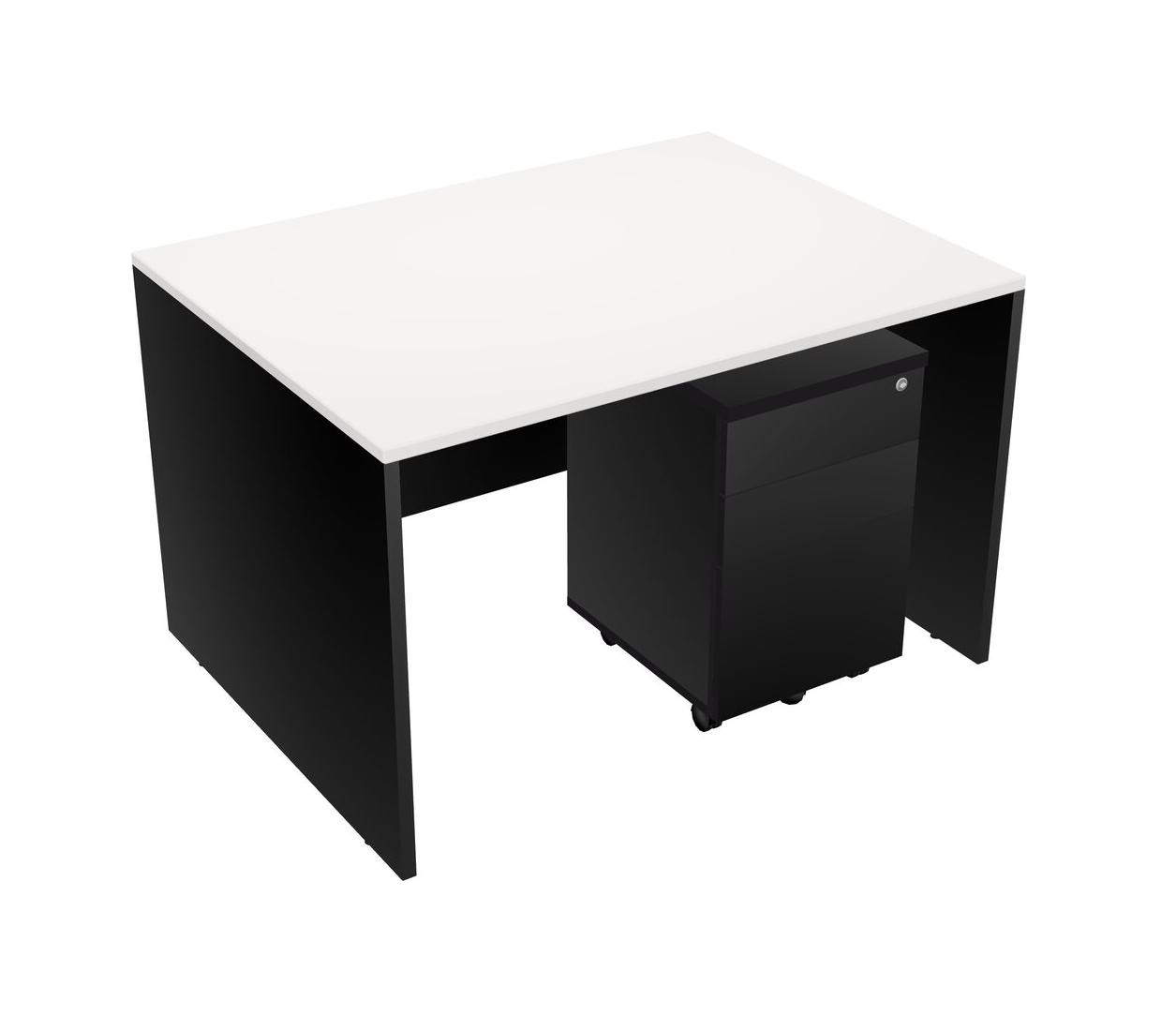 White Rectangular Office Desk Plus Black Wooden Mobile Drawers