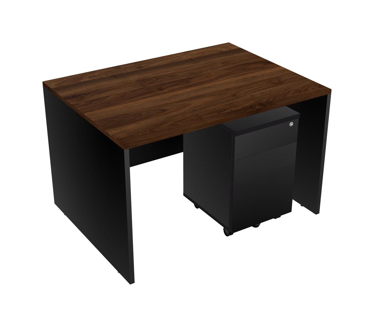 Columbia Walnut Rectangular Office Desk Plus Black Wooden Mobile Drawers