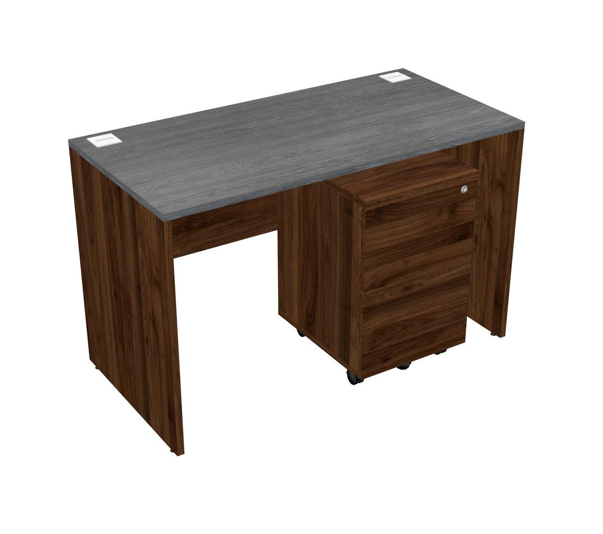 Grey Rectangular Office Desk Plus Columbia Walnut Wooden Mobile Drawers