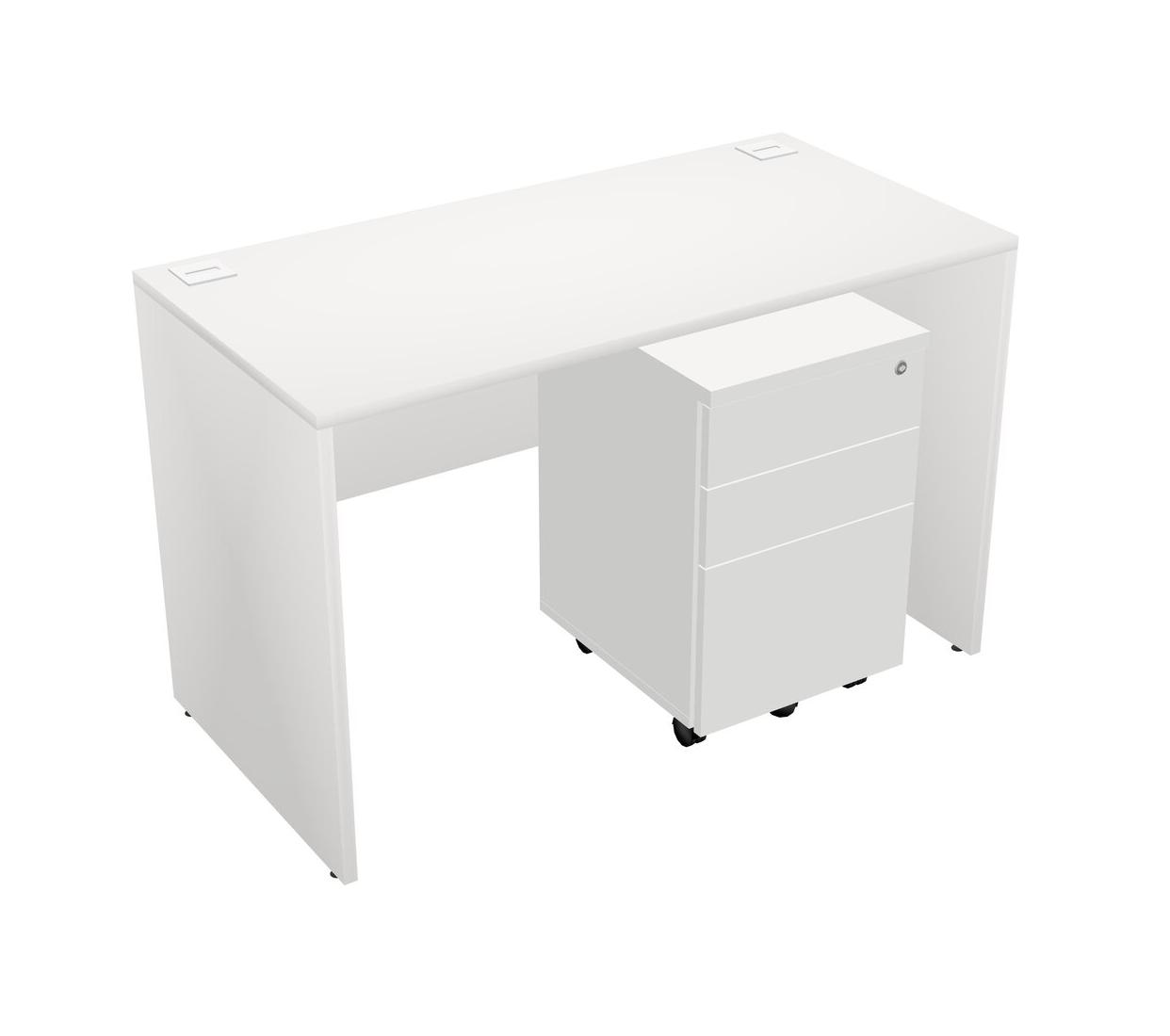 White Rectangular Office Desk Plus White Wooden Mobile Drawers