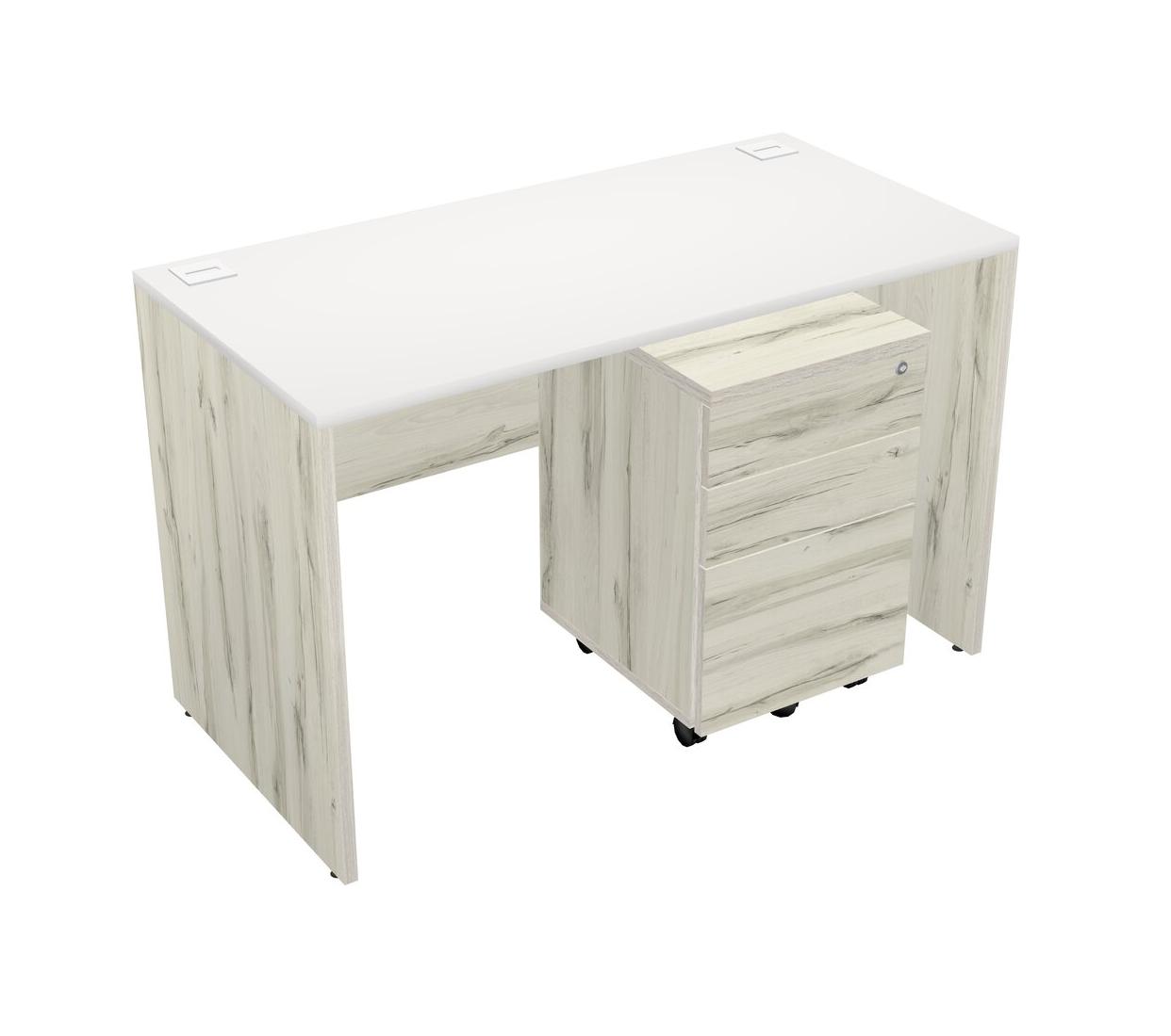 White Rectangular Office Desk Plus Heinne Holz Wooden Mobile Drawers