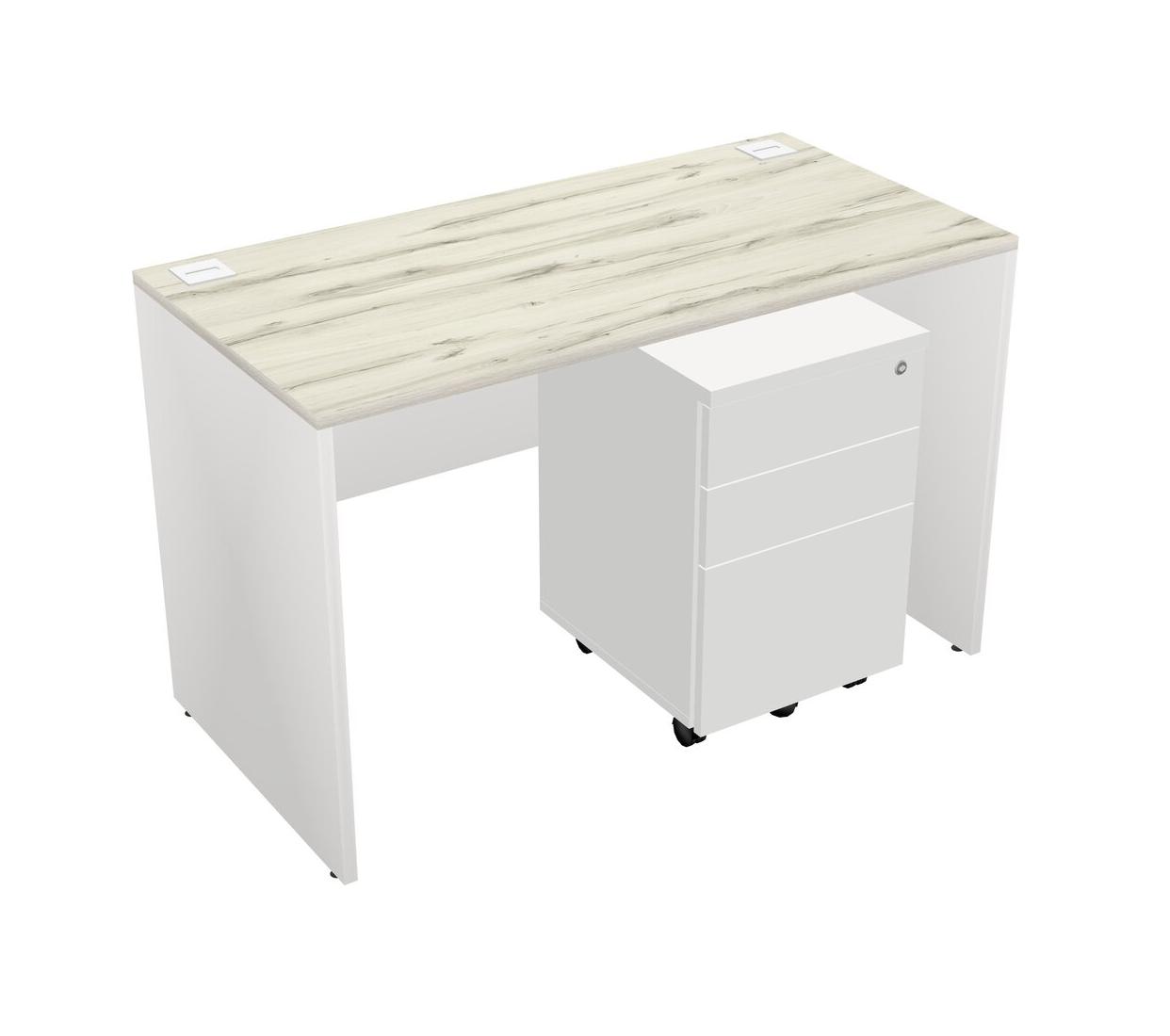 Heinne Holz Rectangular Office Desk Plus White Wooden Mobile Drawers