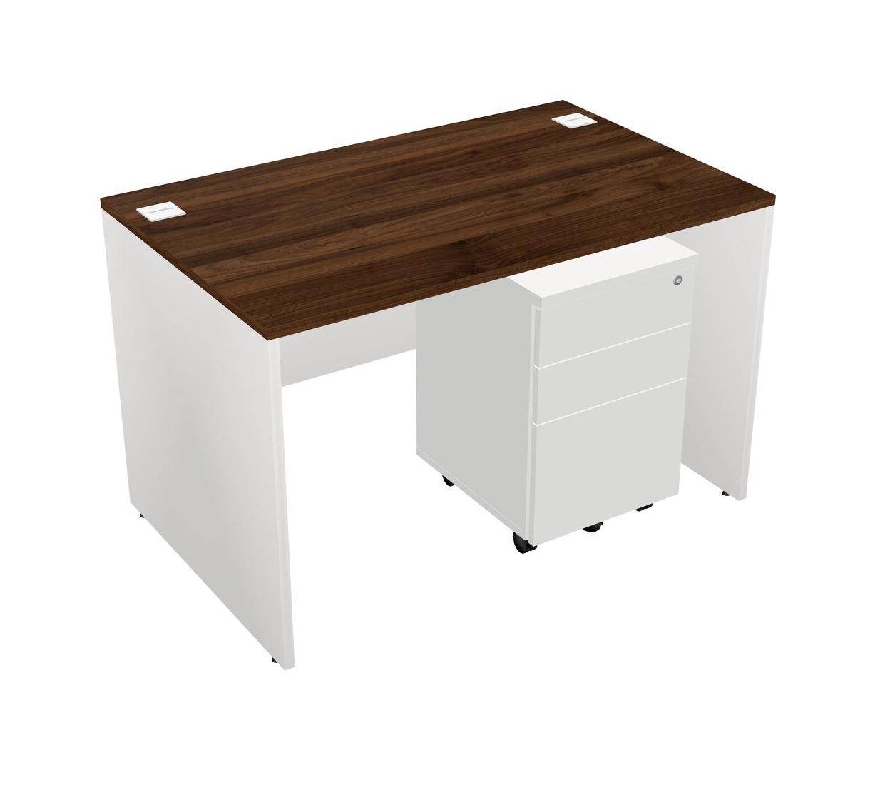 Columbia Walnut Rectangular Office Desk Plus White Wooden Mobile Drawers