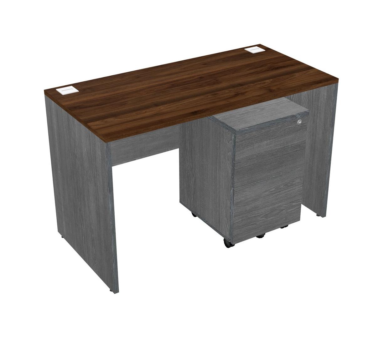 Columbia Walnut Rectangular Office Desk Plus Grey Wooden Mobile Drawers