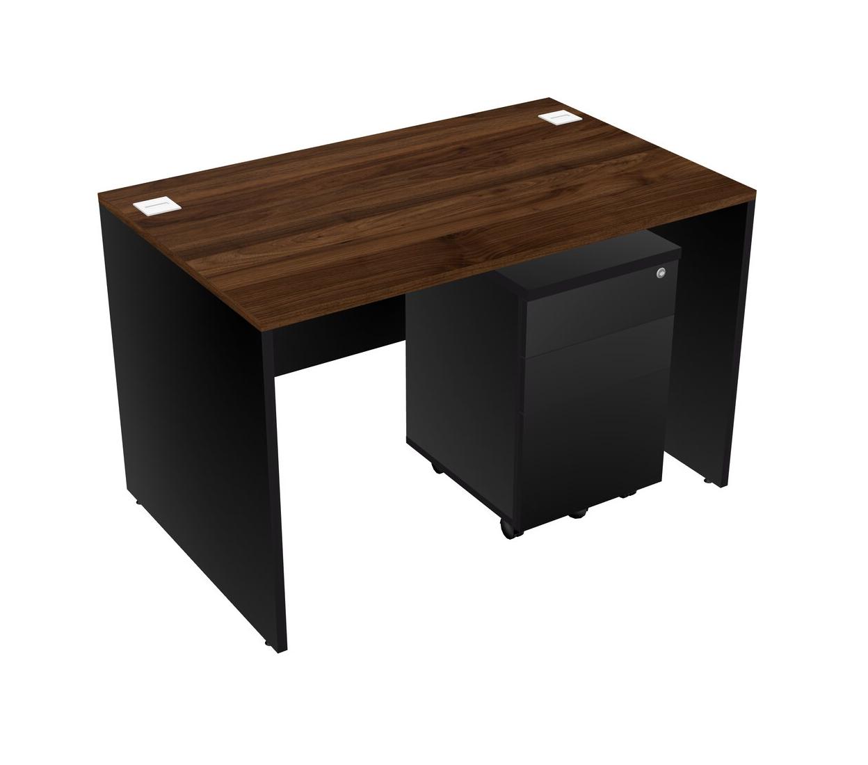 Columbia Walnut Rectangular Office Desk Plus Black Wooden Mobile Drawers