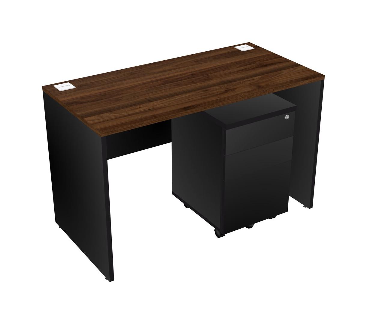 Columbia Walnut Rectangular Office Desk Plus Black Wooden Mobile Drawers