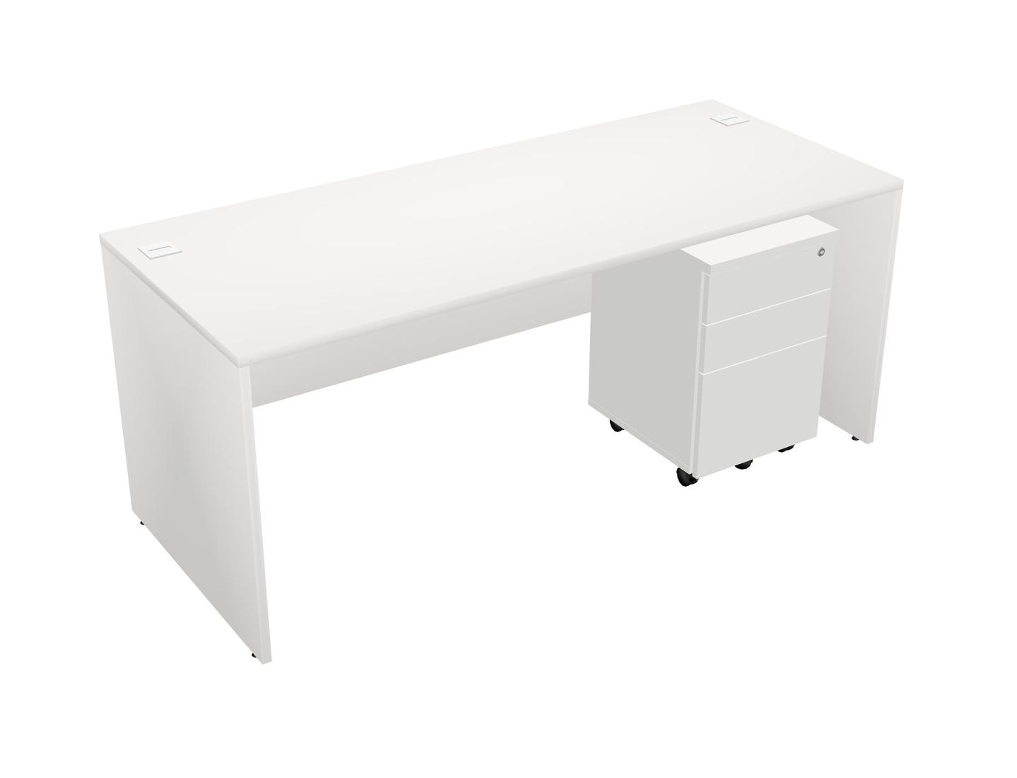 White Rectangular Office Desk Plus White Wooden Mobile Drawers