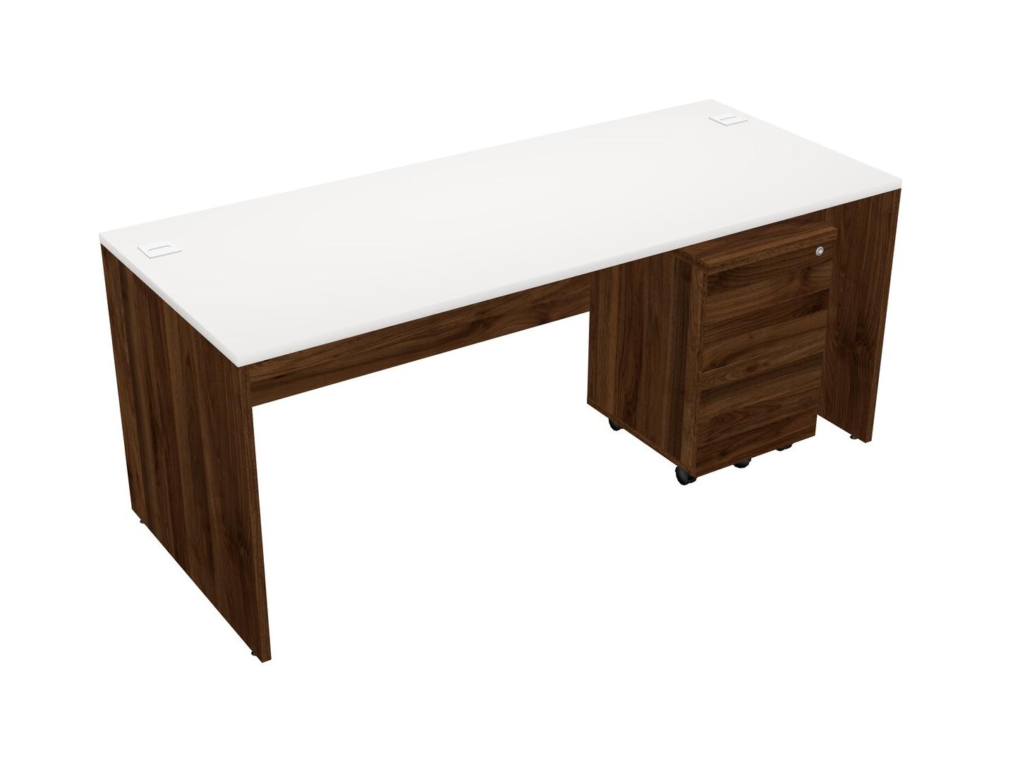 White Rectangular Office Desk Plus Columbia Walnut Wooden Mobile Drawers