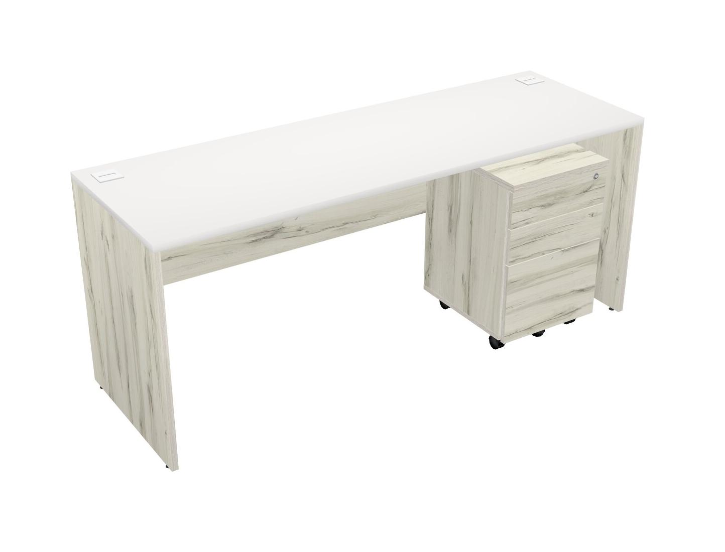 White Rectangular Office Desk Plus Heinne Holz Wooden Mobile Drawers
