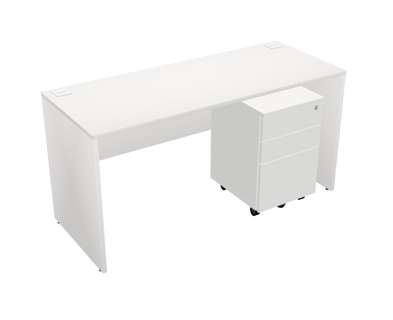 White Rectangular Office Desk Plus White Wooden Mobile Drawers
