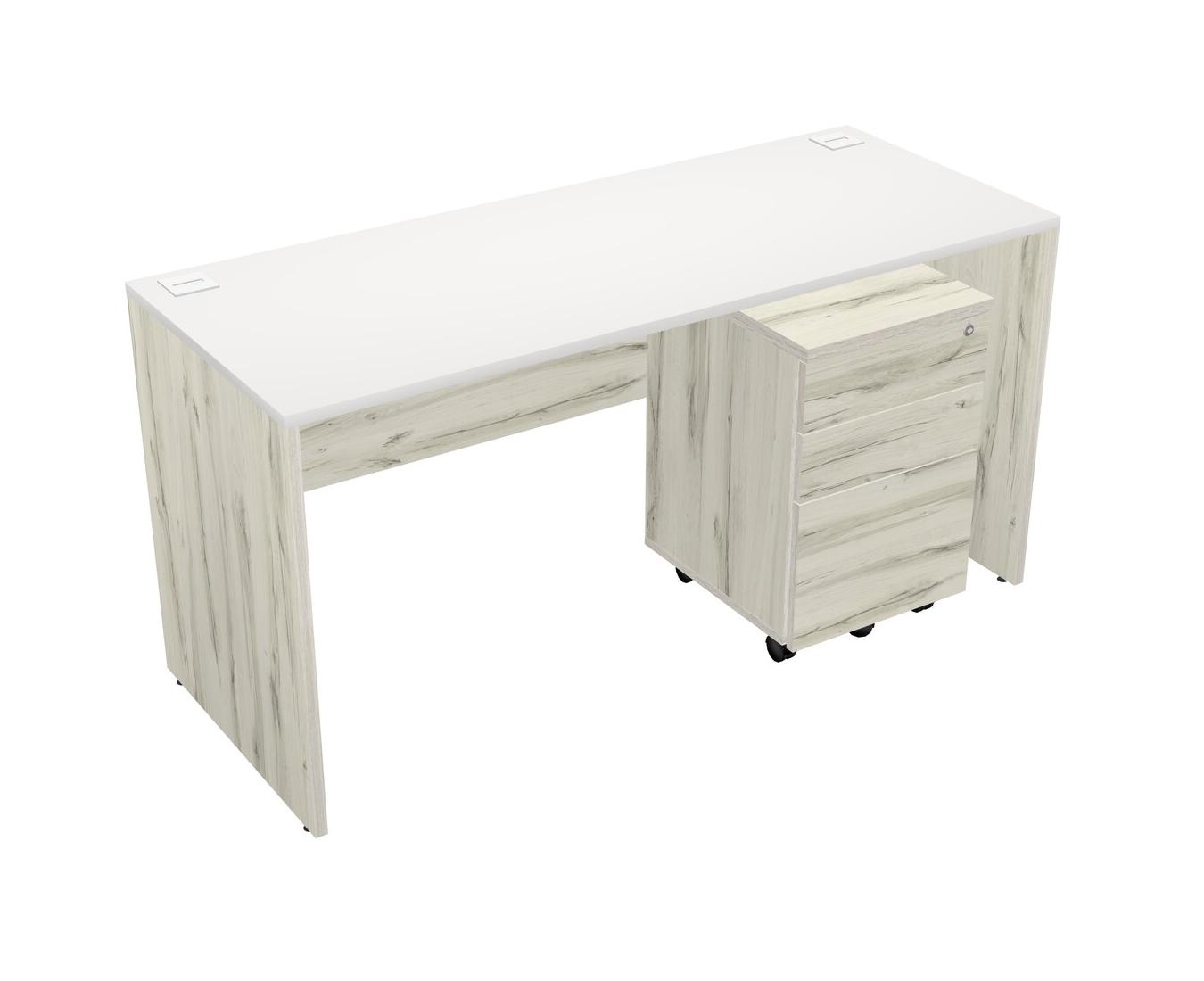 White Rectangular Office Desk Plus Heinne Holz Wooden Mobile Drawers