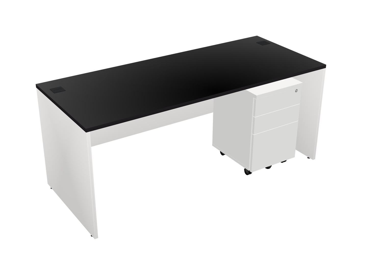 Black Rectangular Office Desk Plus White Wooden Mobile Drawers