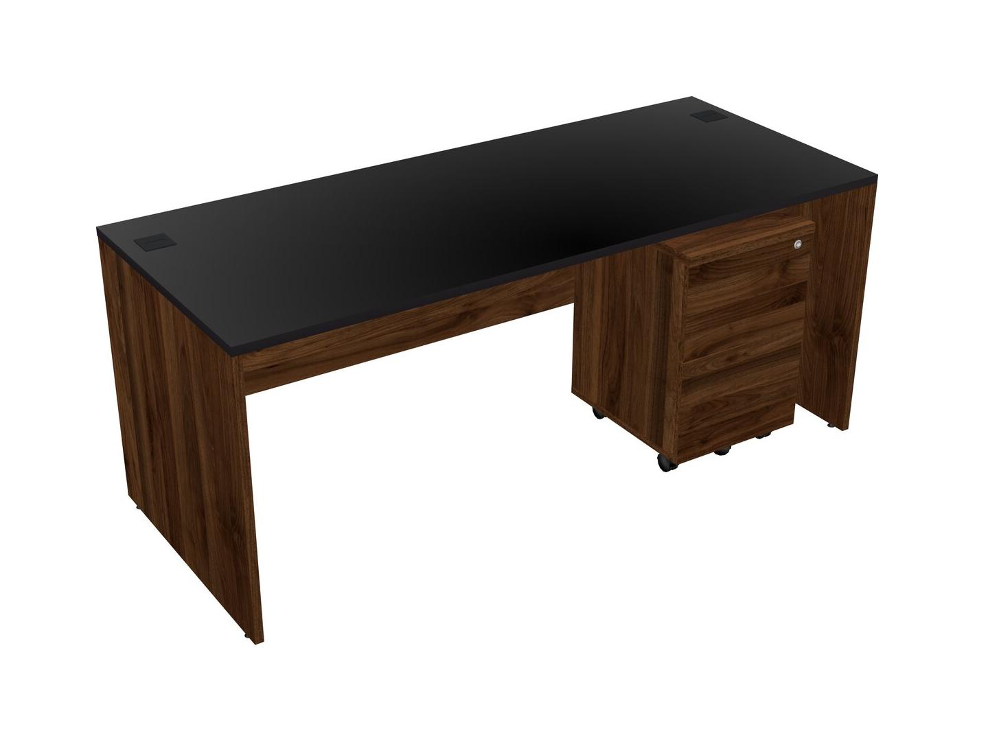 Black Rectangular Office Desk Plus Columbia Walnut Wooden Mobile Drawers