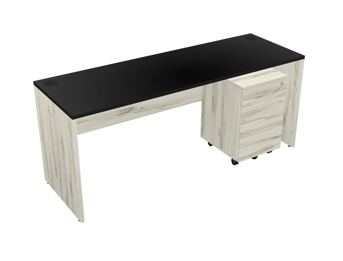 Black Rectangular Office Desk Plus Heinne Holz Wooden Mobile Drawers