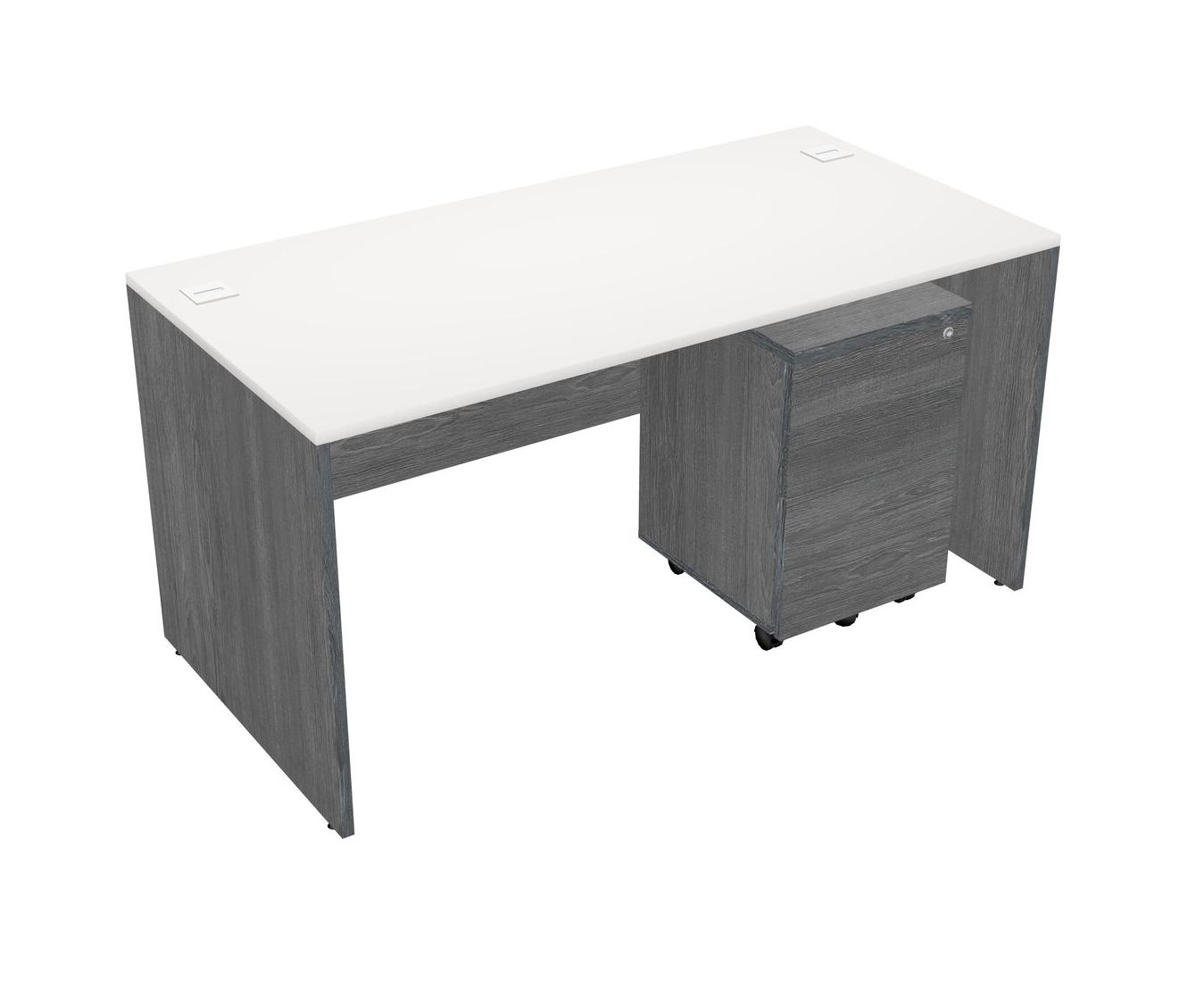White Rectangular Office Desk Plus Grey Wooden Mobile Drawers