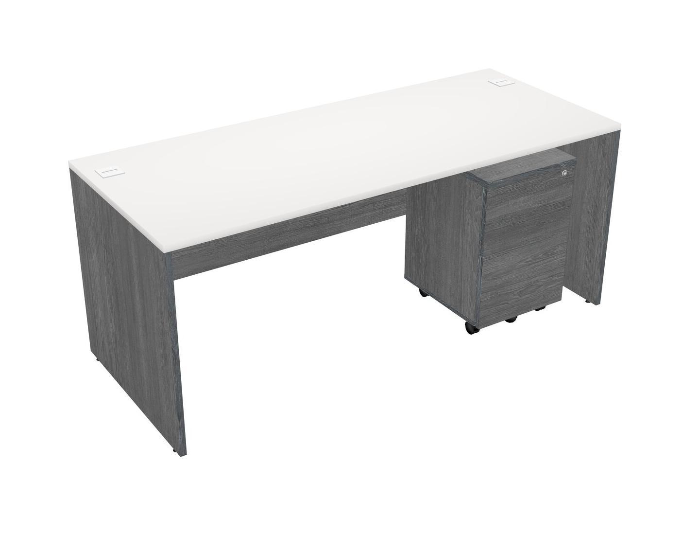 White Rectangular Office Desk Plus Grey Wooden Mobile Drawers