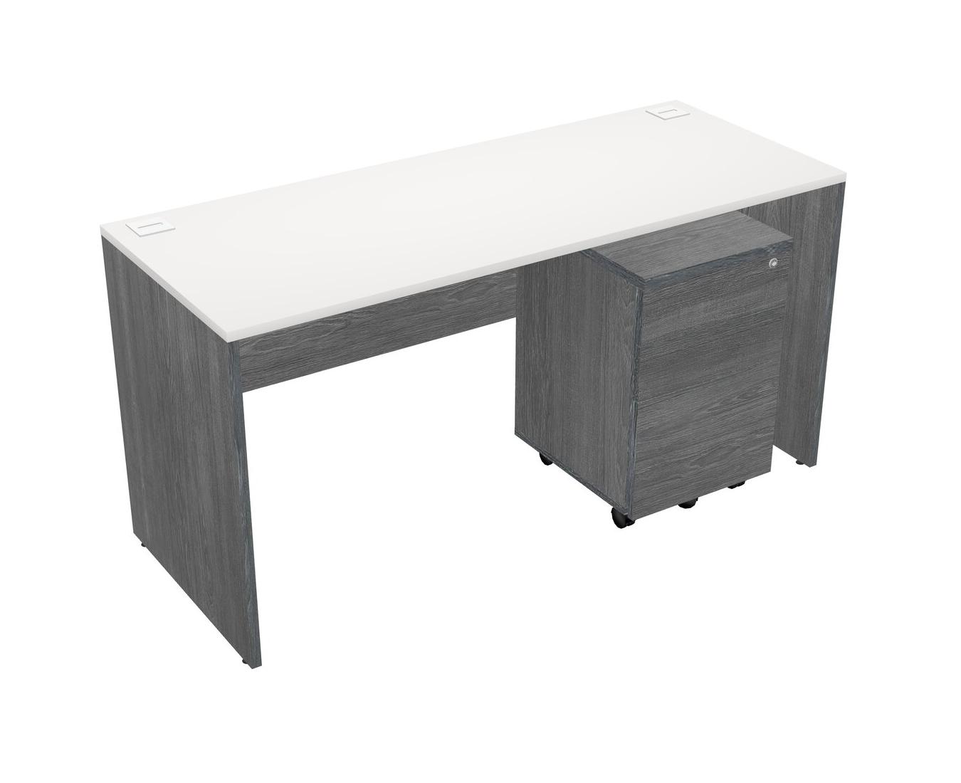 White Rectangular Office Desk Plus Grey Wooden Mobile Drawers