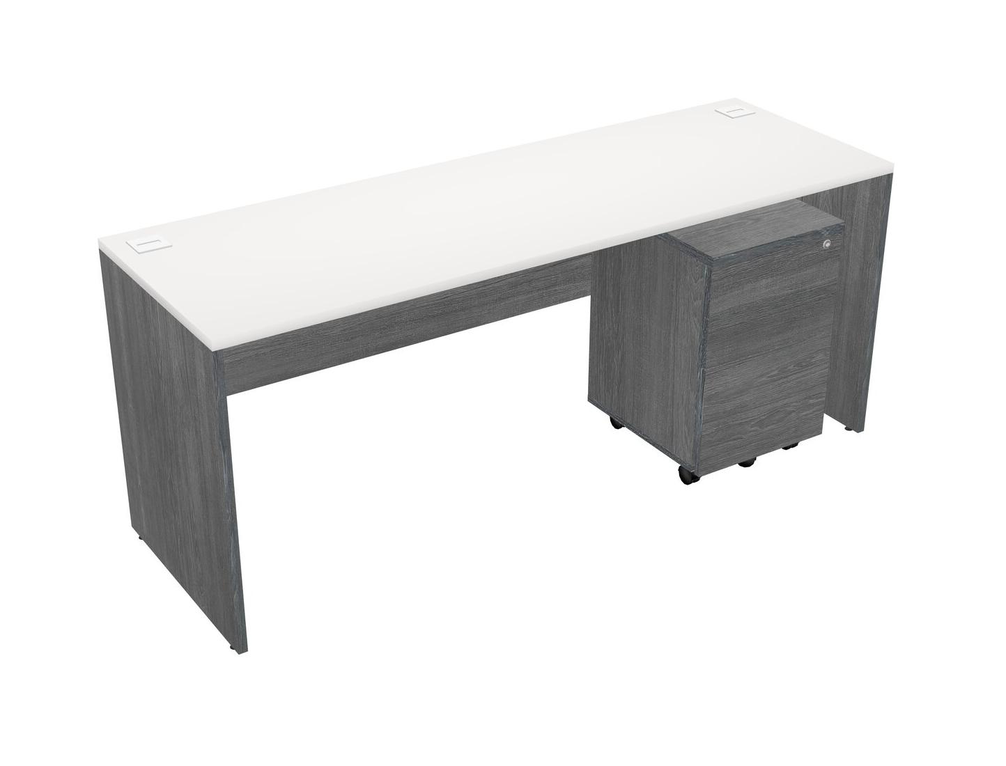 White Rectangular Office Desk Plus Grey Wooden Mobile Drawers