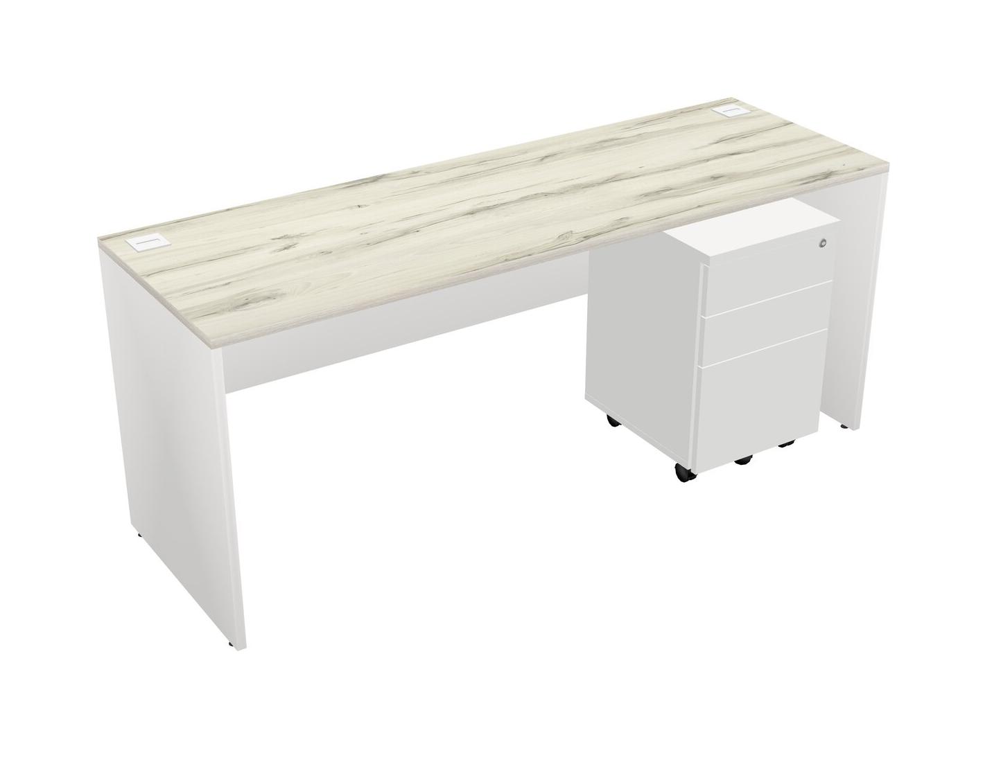 Heinne Holz Rectangular Office Desk Plus White Wooden Mobile Drawers