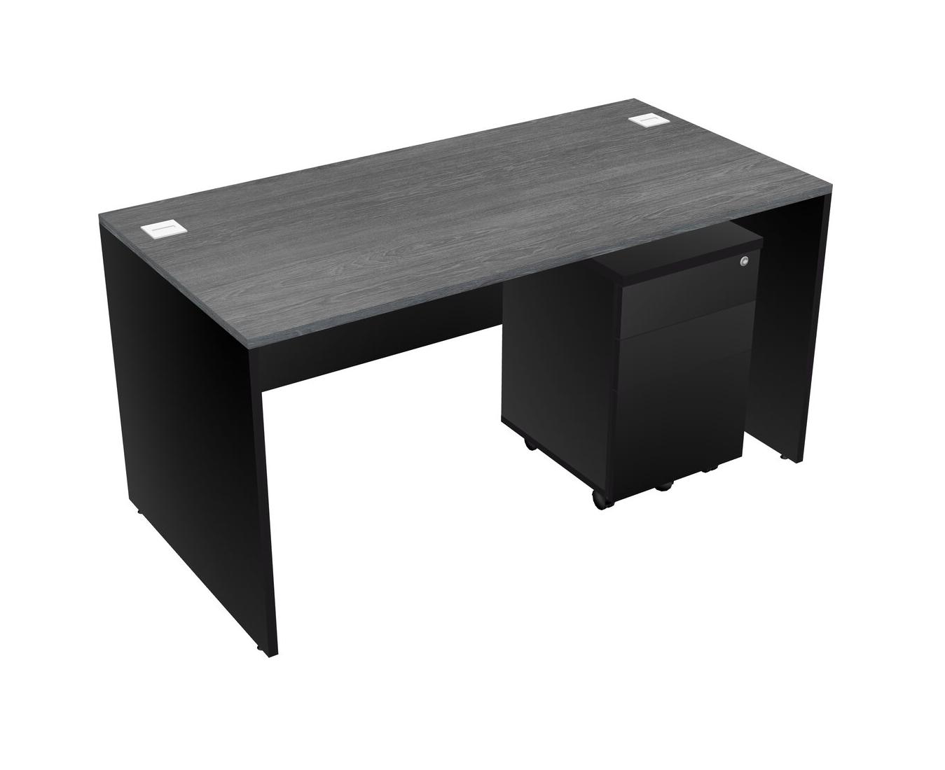 Grey Rectangular Office Desk Plus Black Wooden Mobile Drawers