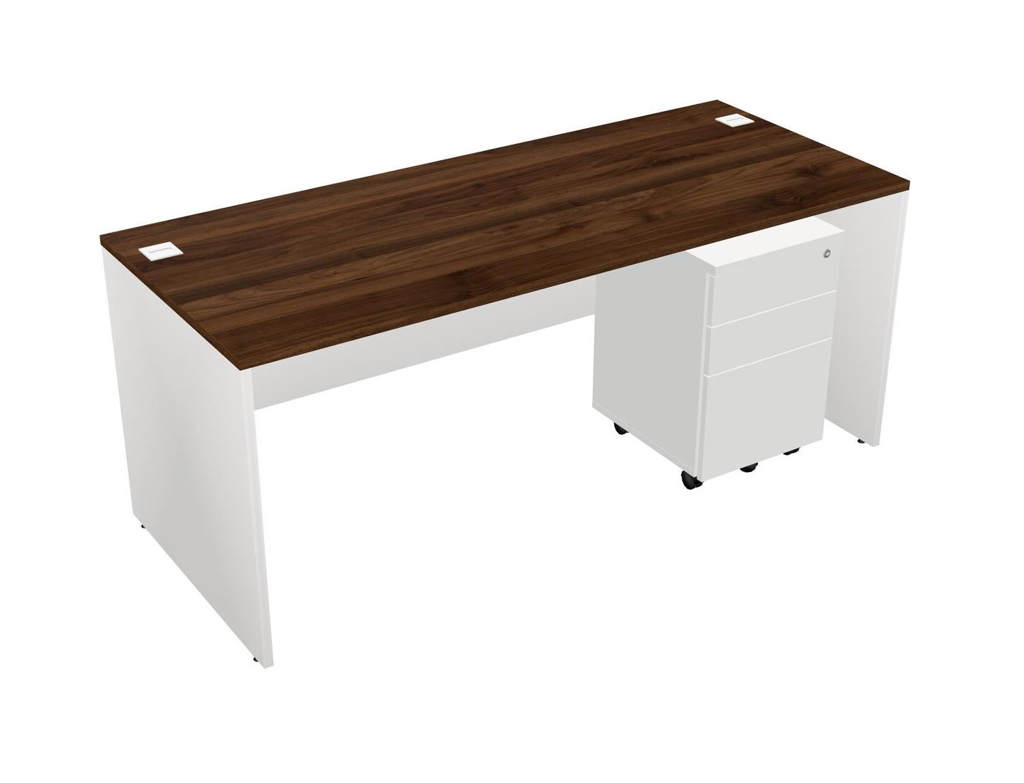 Columbia Walnut Rectangular Office Desk Plus White Wooden Mobile Drawers