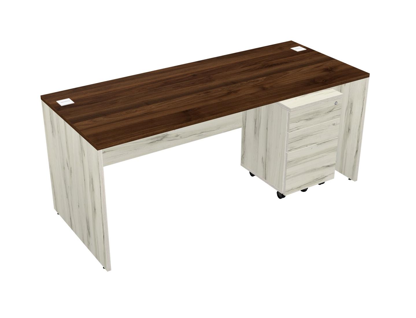 Columbia Walnut Rectangular Office Desk Plus Heinne Holz Wooden Mobile Drawers