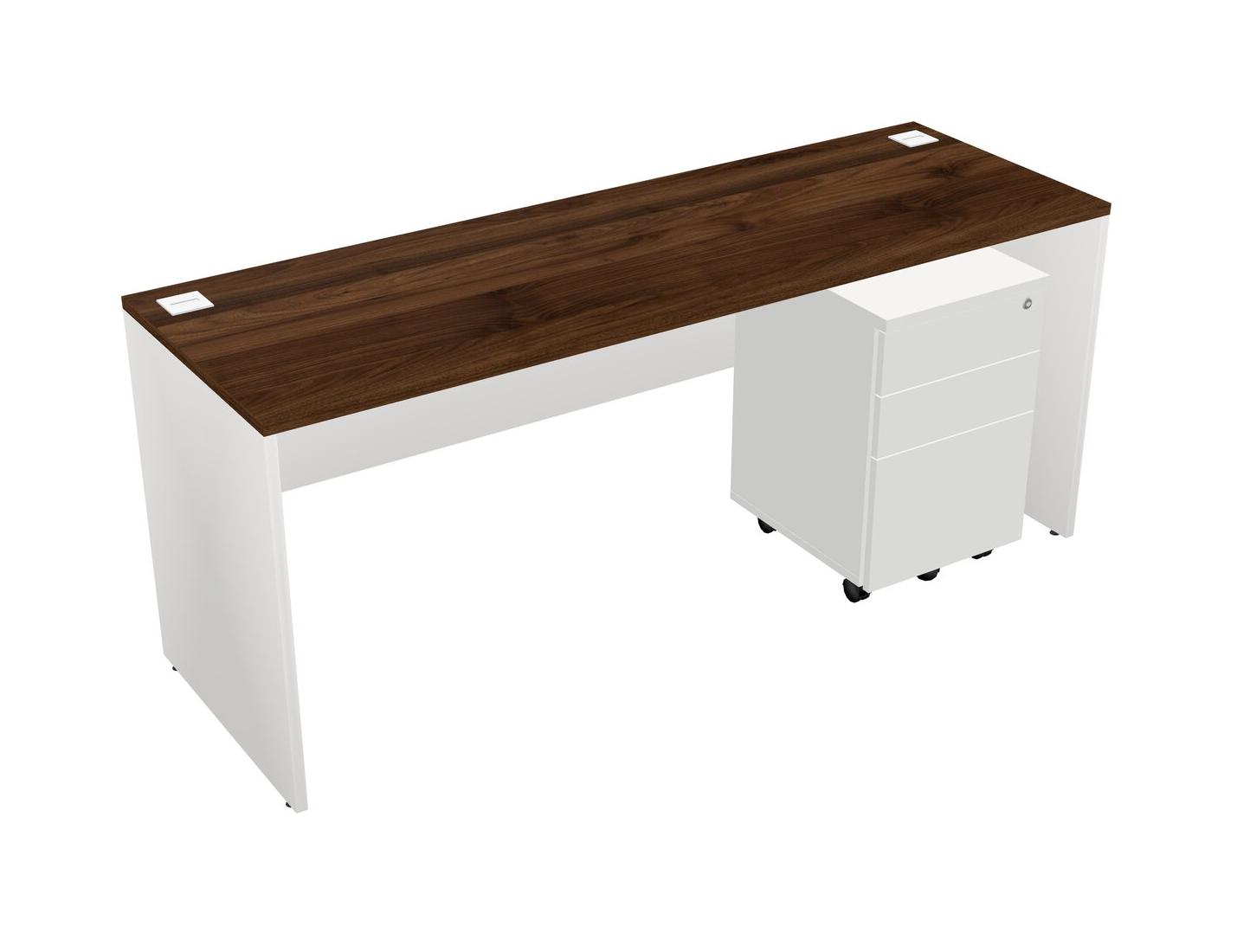 Columbia Walnut Rectangular Office Desk Plus White Wooden Mobile Drawers