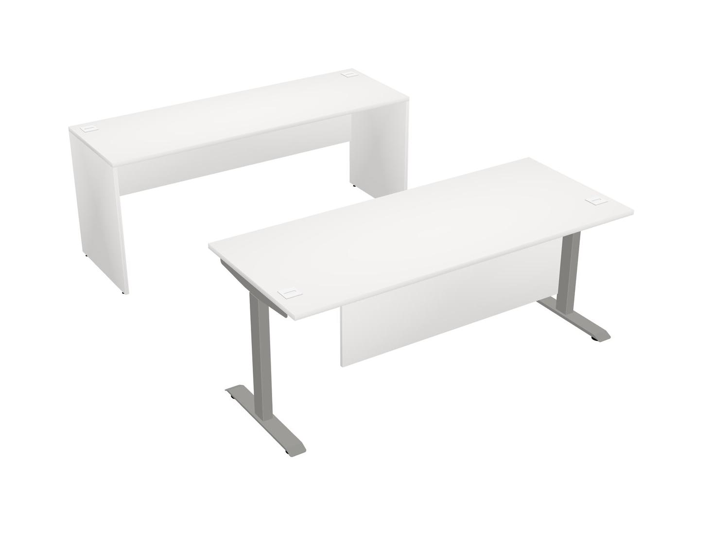 White Parallel Dual Motor Electric Height Adjustable Desk With Modesty Panel - Commercial Grade