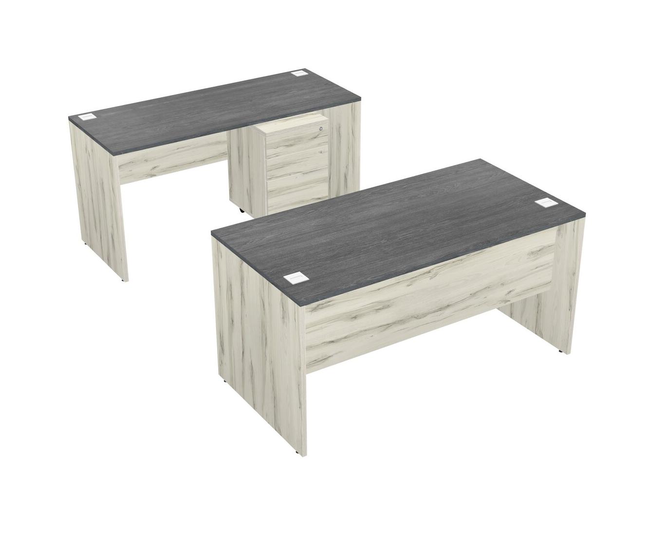 Office Parallel Desk Credenza Desk + Wooden Mobile Drawers