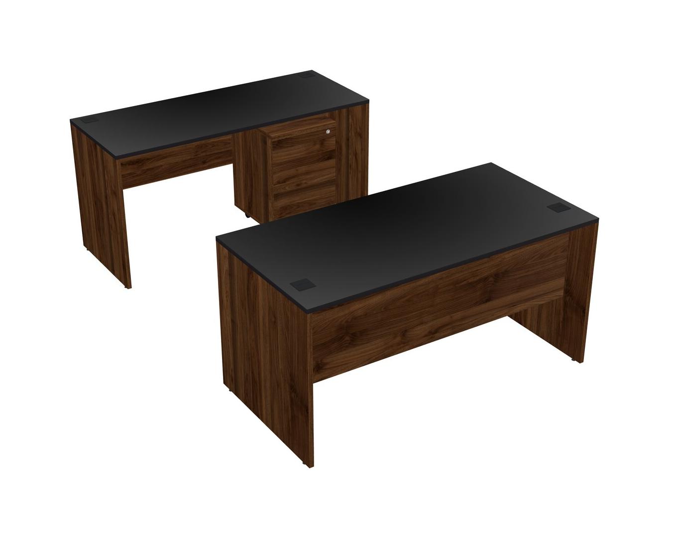 Office Parallel Desk Credenza Desk + Wooden Mobile Drawers