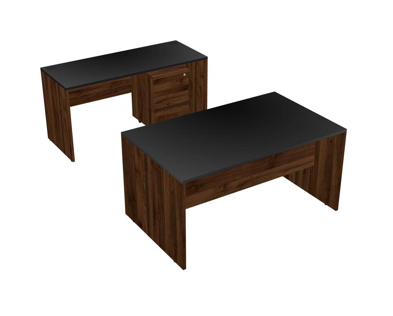 Office Parallel Desk Credenza Desk + Wooden Mobile Drawers
