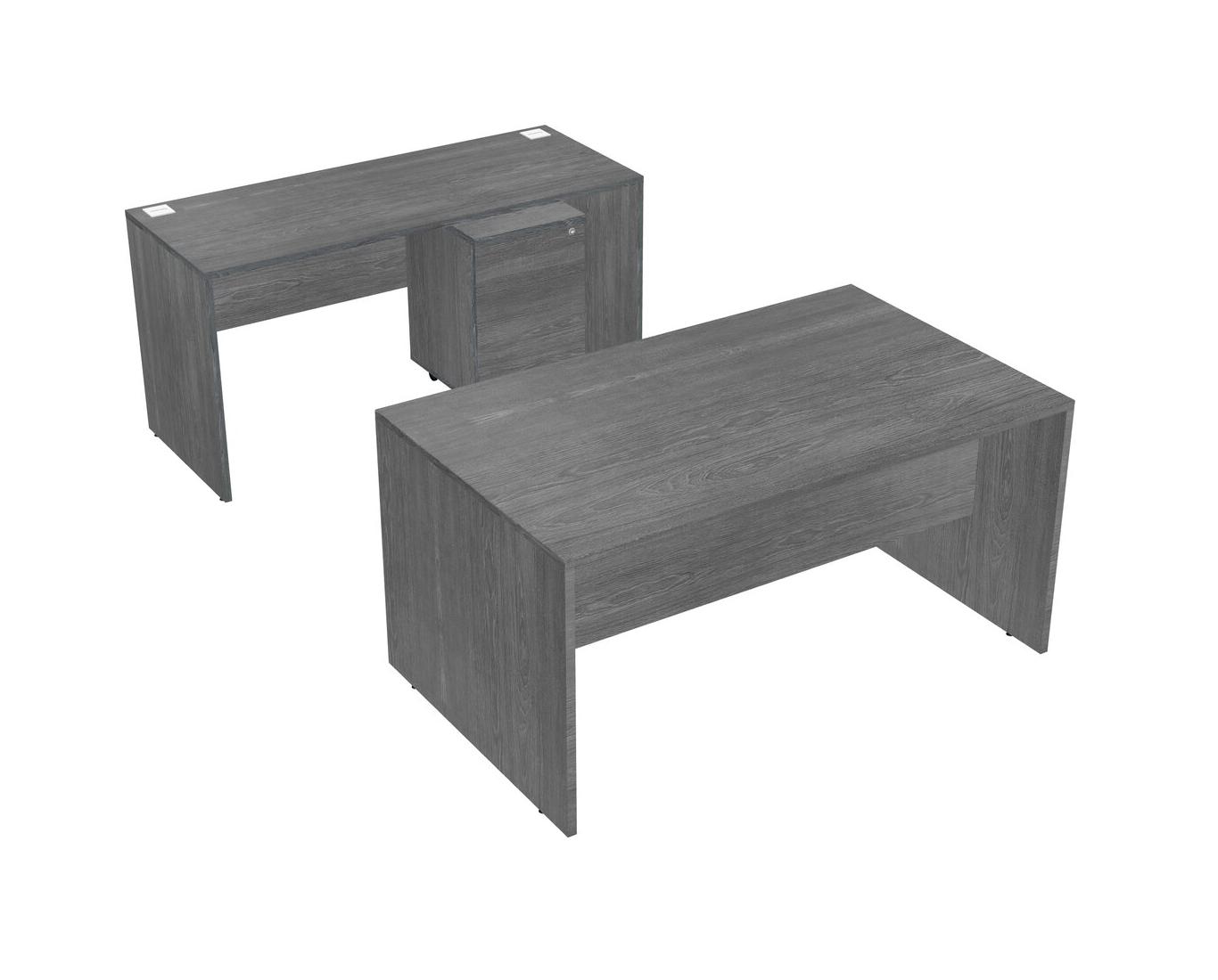 Office Parallel Desk Credenza Desk + Wooden Mobile Drawers
