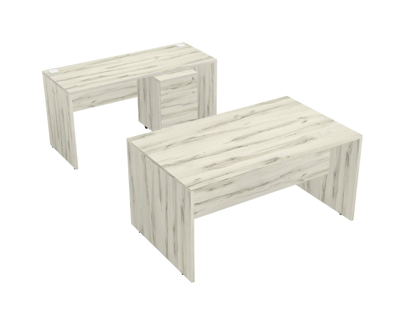 Office Parallel Desk Credenza Desk + Wooden Mobile Drawers