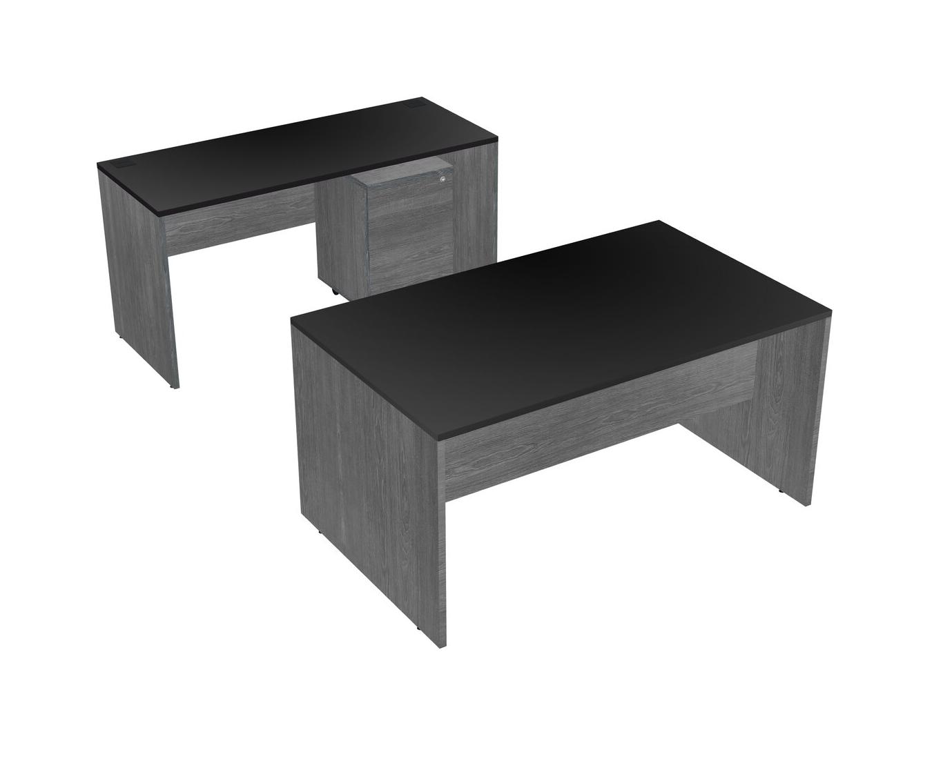 Office Parallel Desk Credenza Desk + Wooden Mobile Drawers
