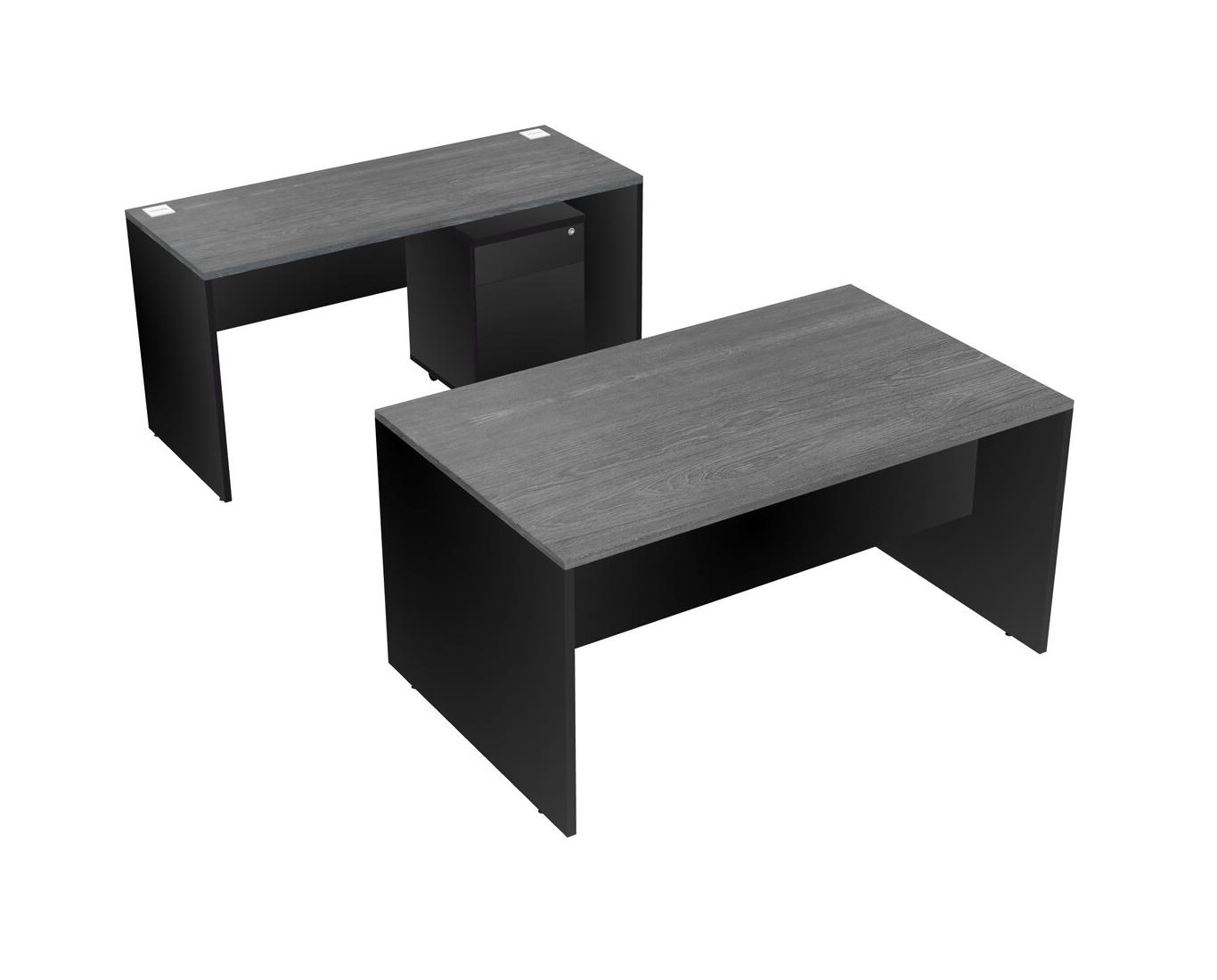 Office Parallel Desk Credenza Desk + Wooden Mobile Drawers