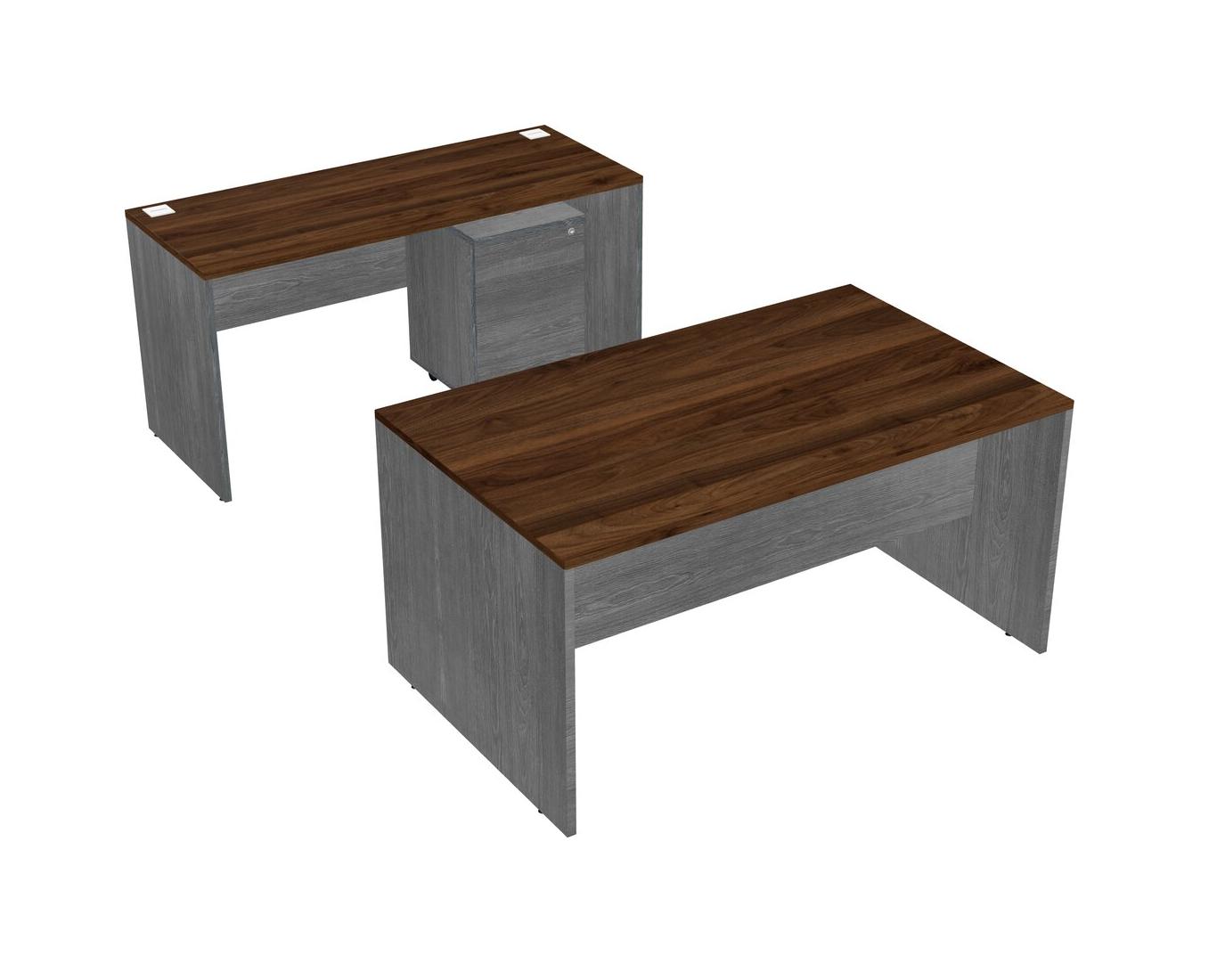 Office Parallel Desk Credenza Desk + Wooden Mobile Drawers