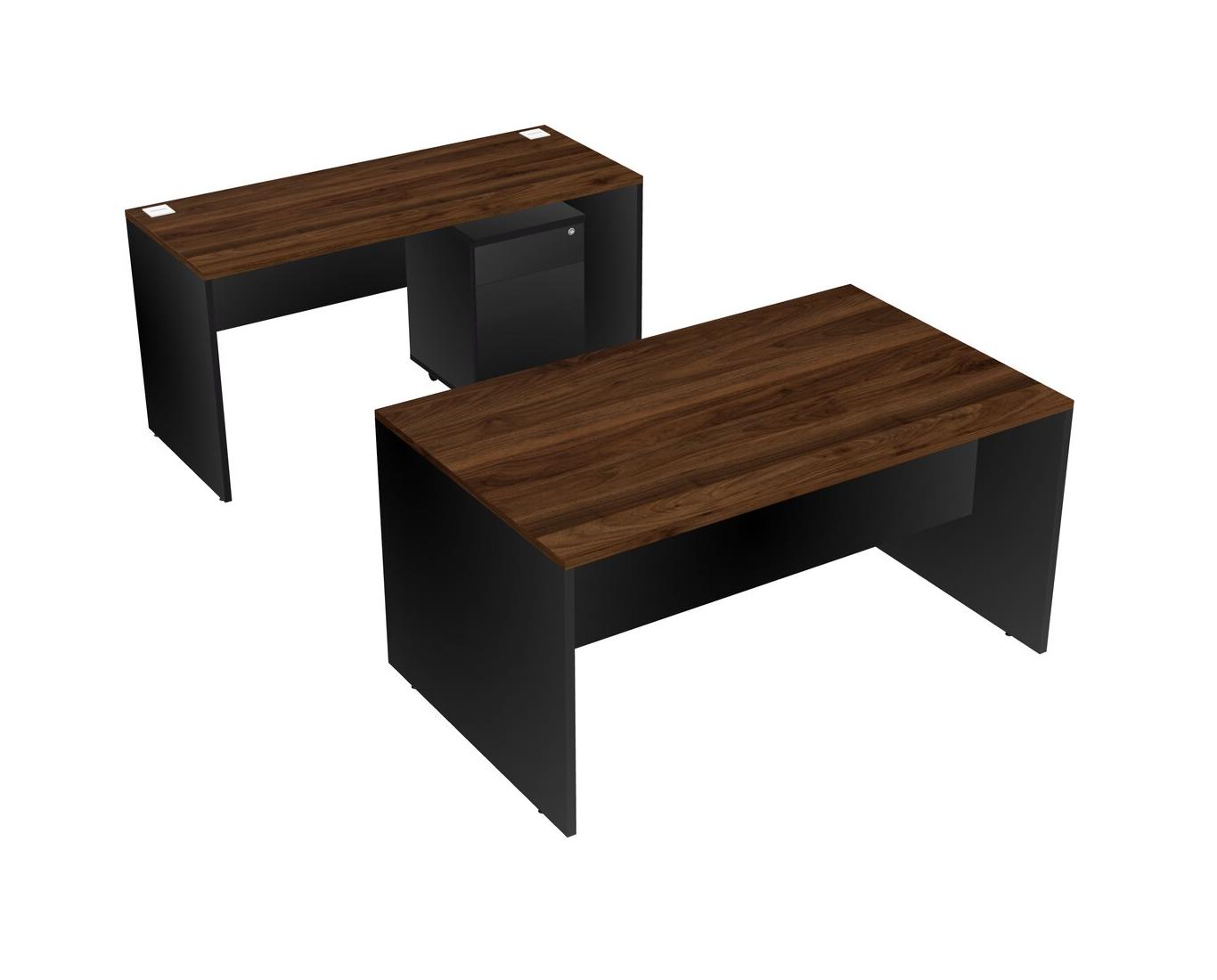 Office Parallel Desk Credenza Desk + Wooden Mobile Drawers