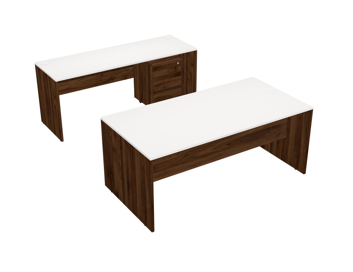 Office Parallel Desk Credenza Desk + Wooden Mobile Drawers