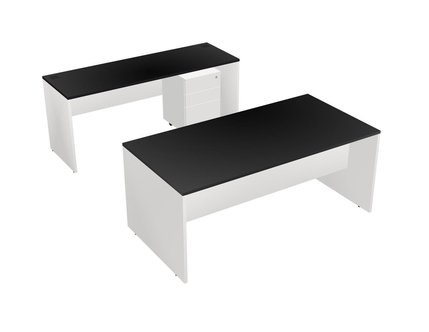 Office Parallel Desk Credenza Desk + Wooden Mobile Drawers