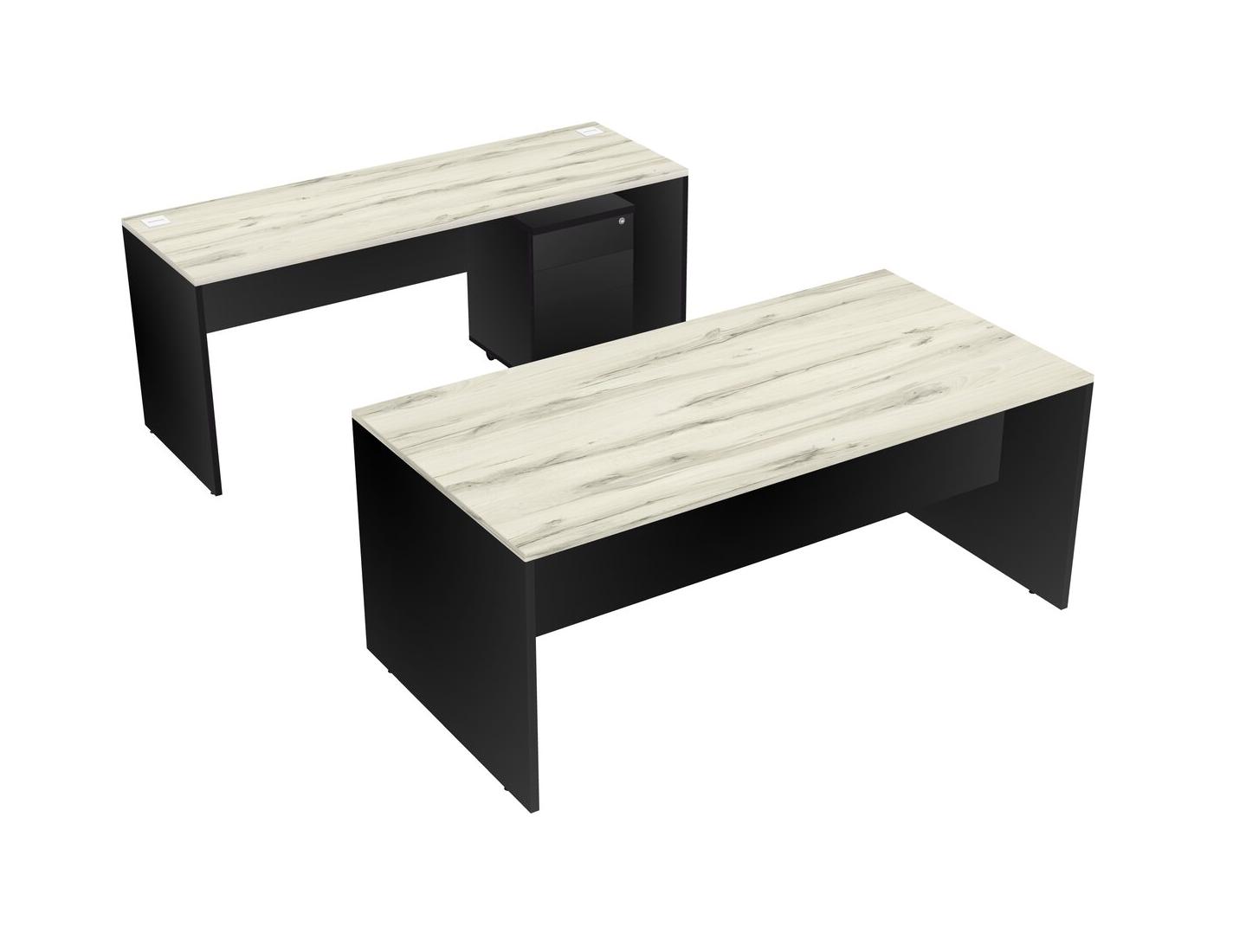 Office Parallel Desk Credenza Desk + Wooden Mobile Drawers