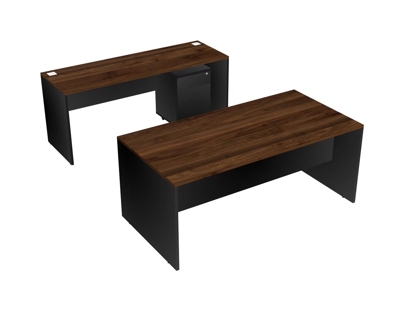 Office Parallel Desk Credenza Desk + Wooden Mobile Drawers