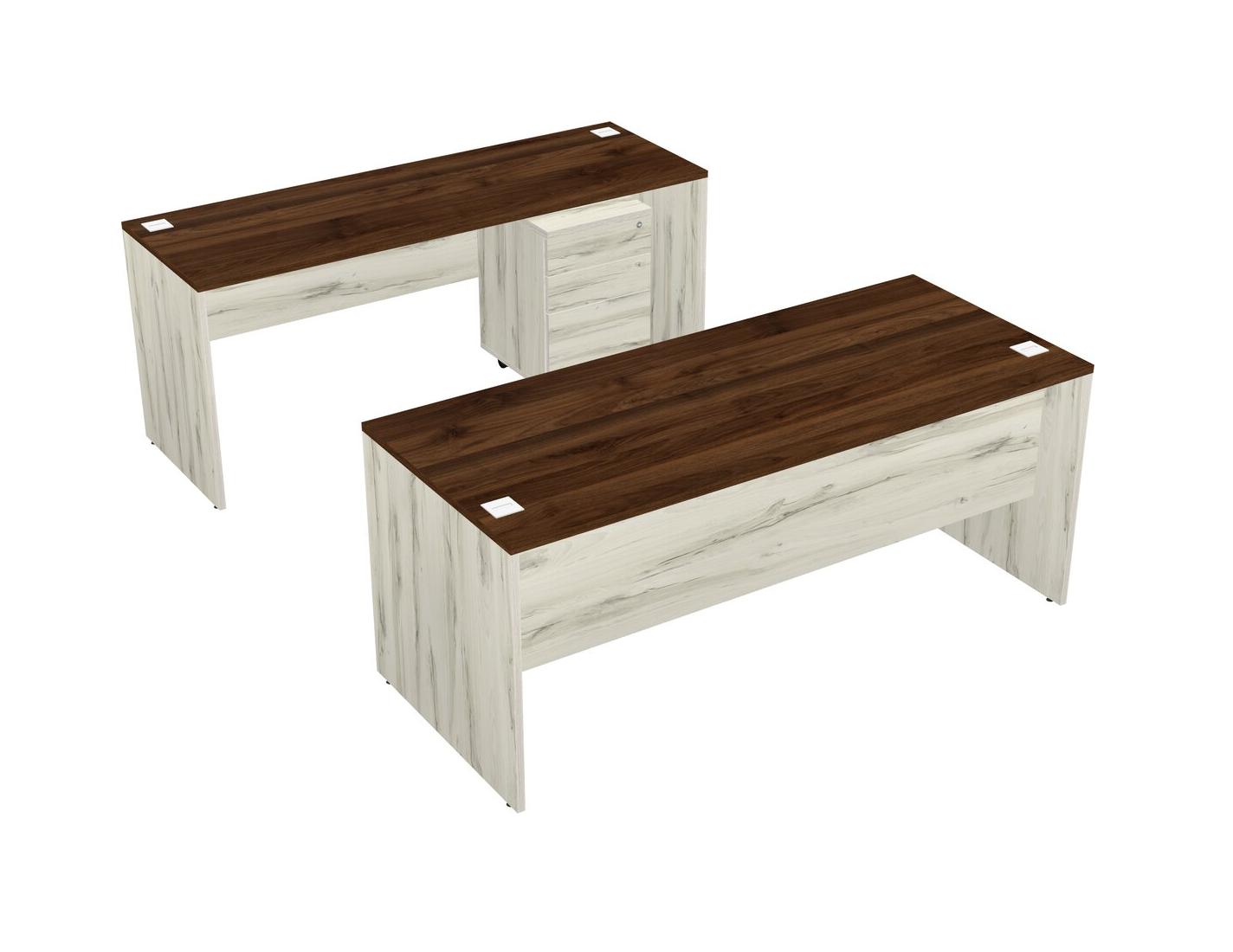 Office Parallel Desk Credenza Desk + Wooden Mobile Drawers