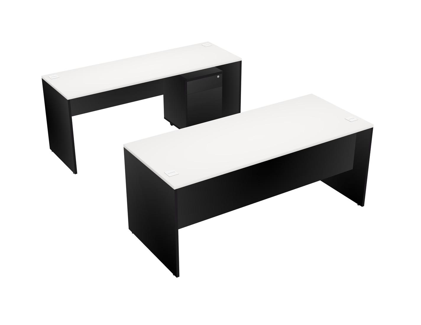 Office Parallel Desk Credenza Desk + Wooden Mobile Drawers