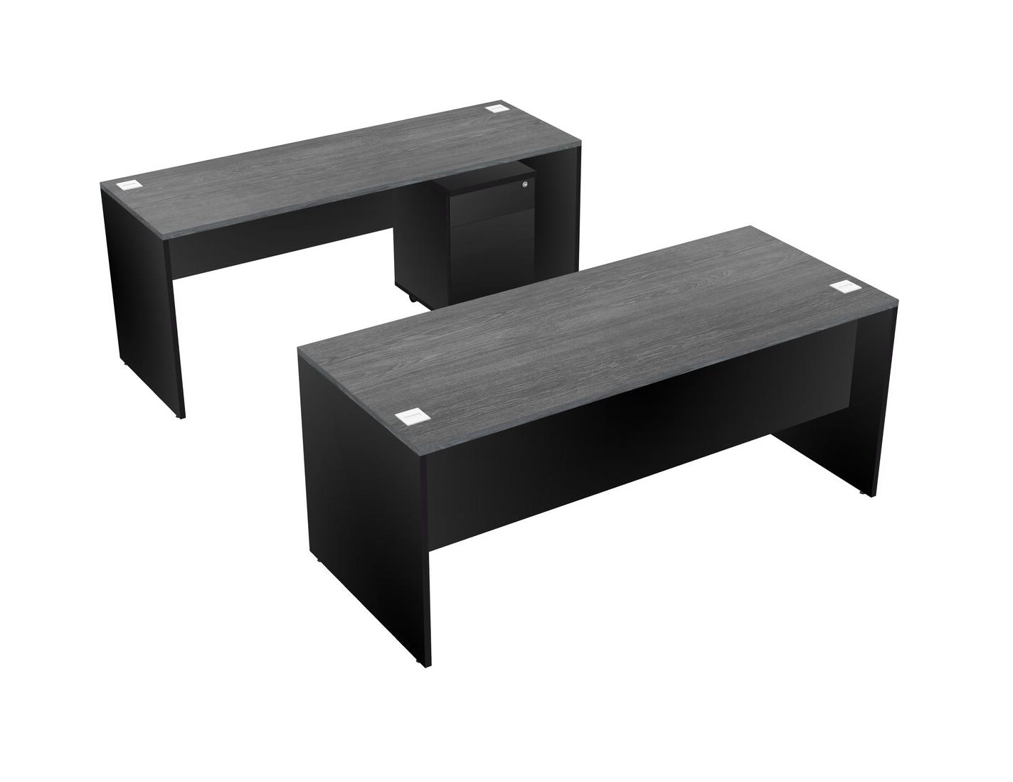 Office Parallel Desk Credenza Desk + Wooden Mobile Drawers