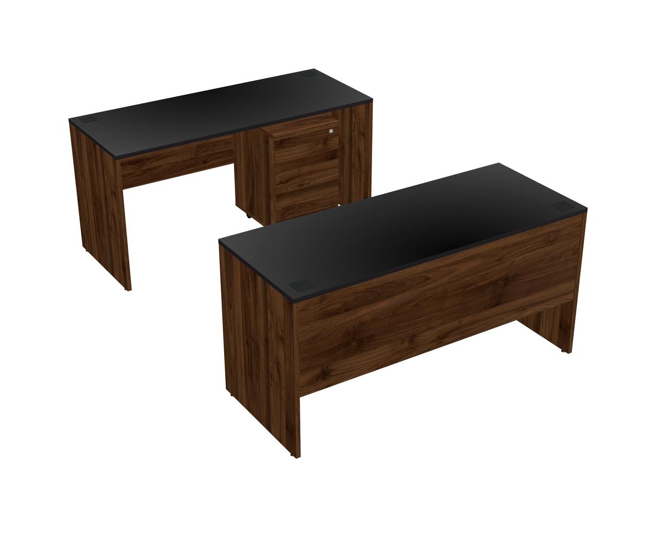 Office Parallel Desk Credenza Desk + Wooden Mobile Drawers