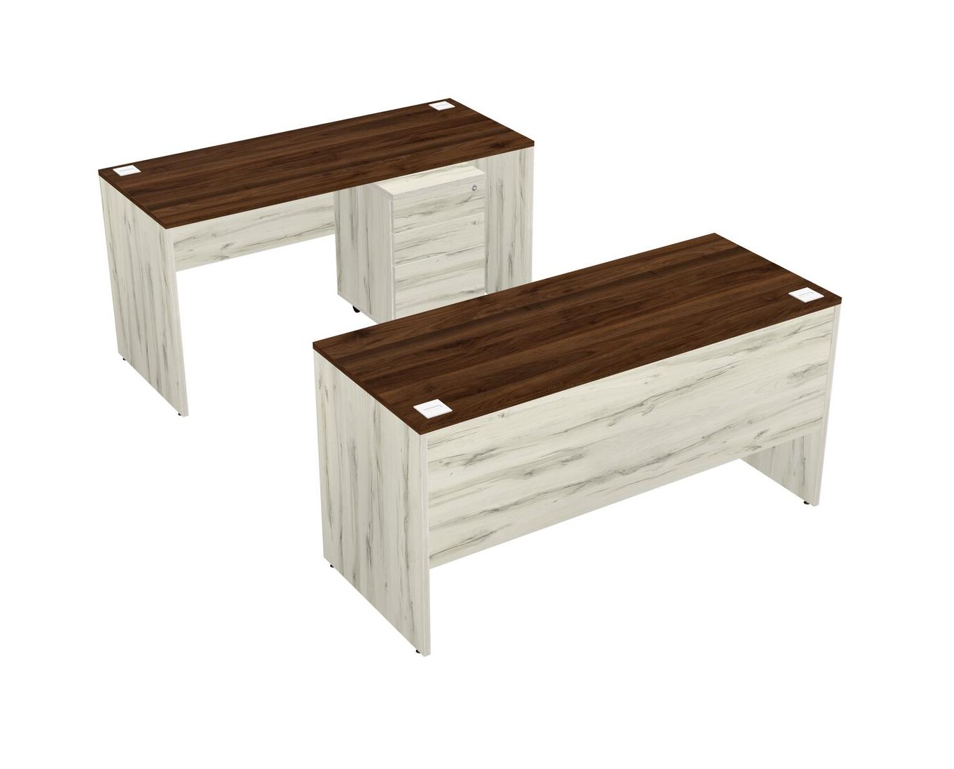 Office Parallel Desk Credenza Desk + Wooden Mobile Drawers
