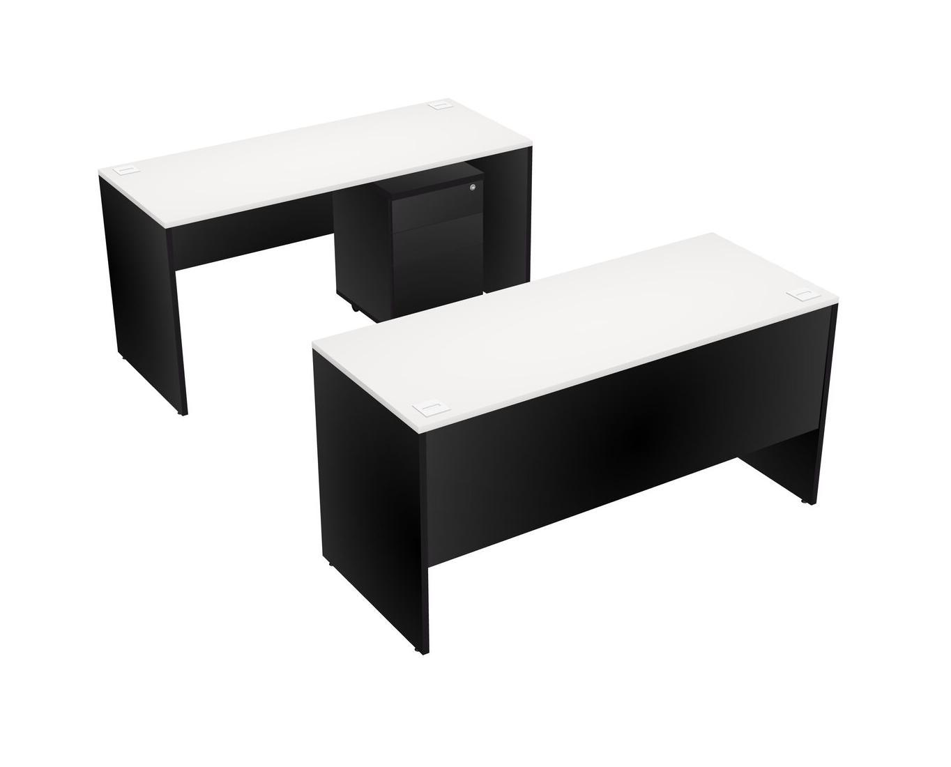 Office Parallel Desk Credenza Desk + Wooden Mobile Drawers