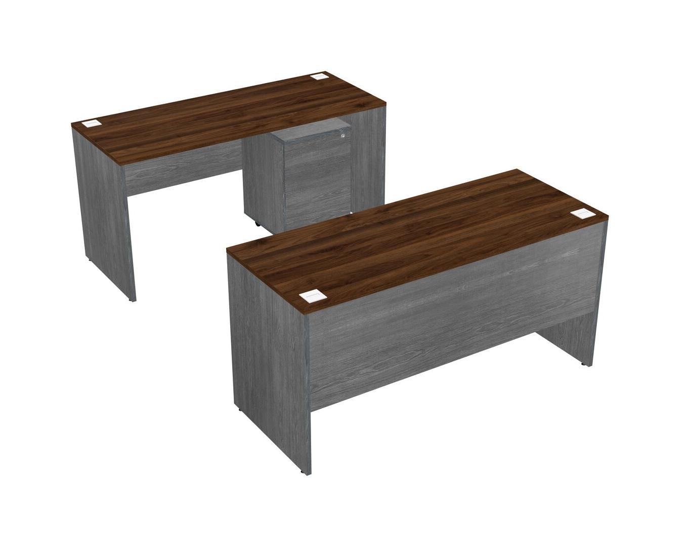 Office Parallel Desk Credenza Desk + Wooden Mobile Drawers