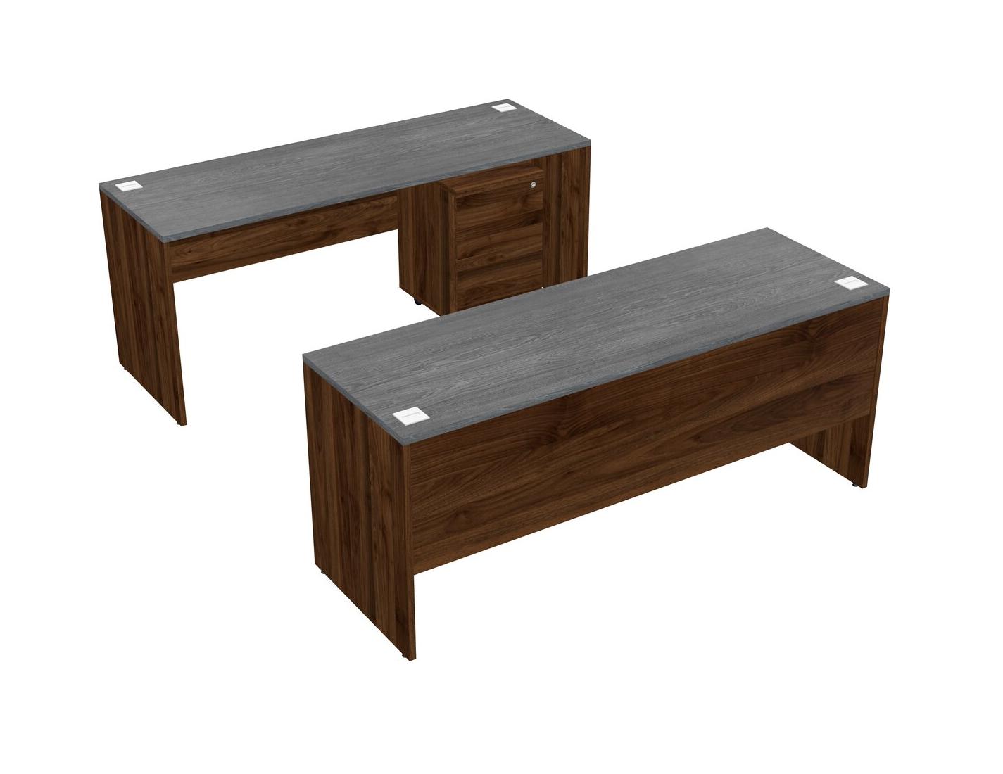 Office Parallel Desk Credenza Desk + Wooden Mobile Drawers
