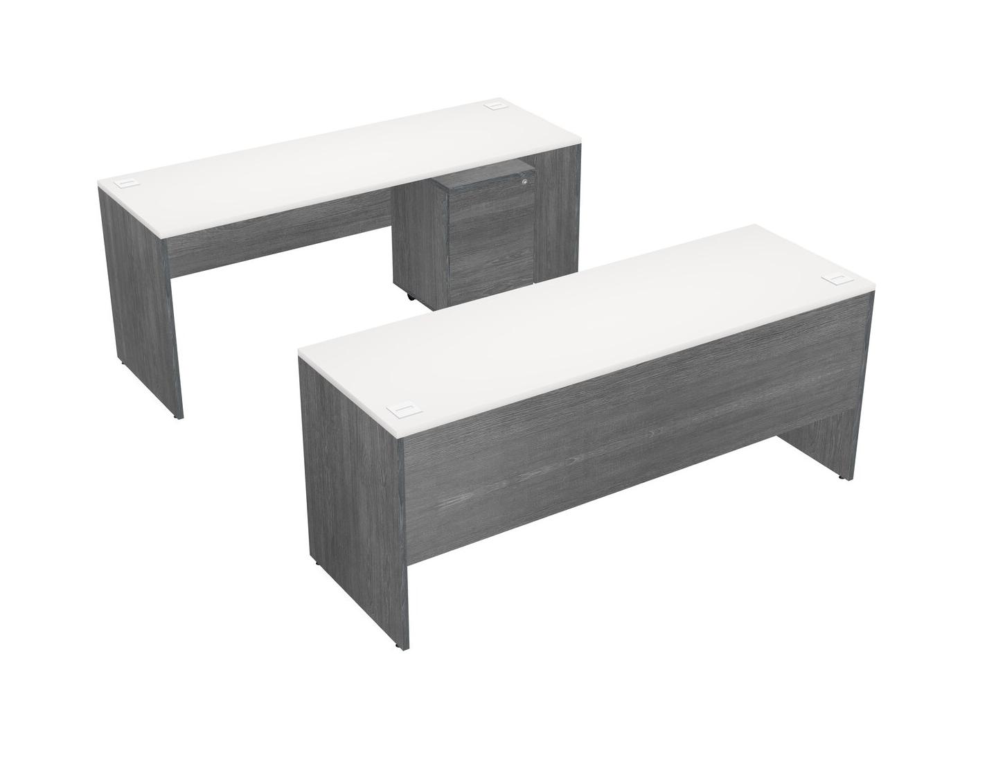Office Parallel Desk Credenza Desk + Wooden Mobile Drawers